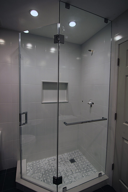 There is no standard when it comes to custom shower enclosure. We have many varieties of designs and materials to make the right solution to your bathroom. We offer full line of glass colors, thickness, we carry many choices of shower door hardware, we can match most of the finishes.